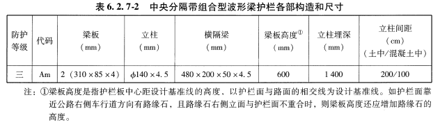 中央分隔帶波形梁護欄從構造上可分為分設型和組合型兩種。中央分隔帶寬度大于或等于2m,中央分隔帶內構造物較多,或在中央分隔帶下埋設有管線的路段,可采用分設型護欄;中央分隔帶寬度小于2m,中央分隔帶內構造物不多或埋設管線較少的路段,可采用組合型護欄。
