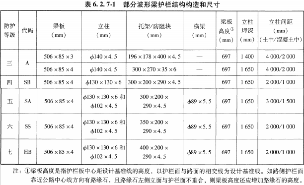 組合型波形梁護欄規(guī)格參數(shù)和適用范圍表: