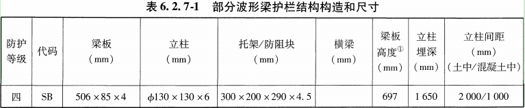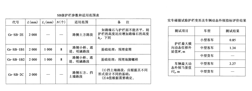 四(SB)級路側波形梁護欄參數和使用該范圍如下: