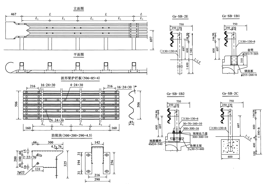 四(SB)級路側波形梁護欄一般構造示例如圖所示: