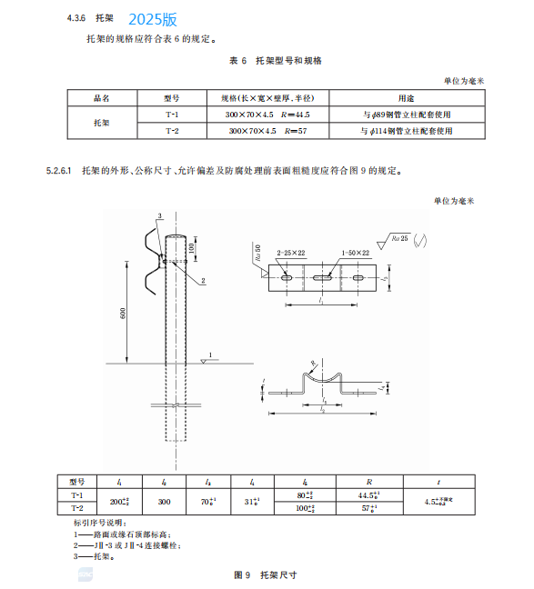 j) 增加了 2.0 mm 厚和 2.5 mm 厚兩波形梁板的最小厚度和平均厚度要求、中部連接螺孔數(shù)量應(yīng)根據(jù)鋼管立柱間距設(shè)置的要求(見(jiàn) 5.2.1.1、5.2.1.2);