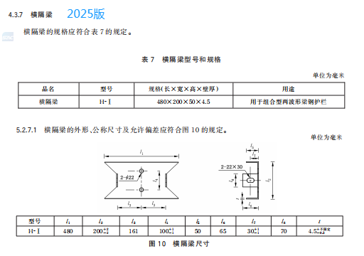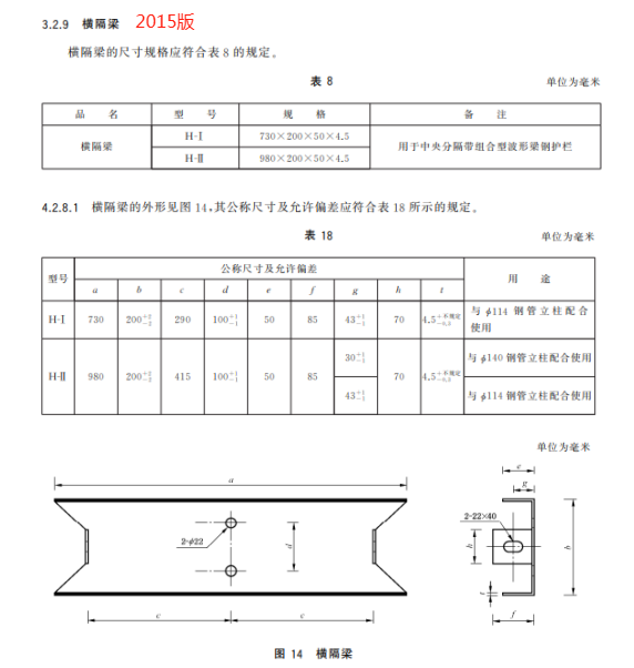 h) 更 改 了 橫 隔 梁 的 用 途 、規(guī) 格 和 公 稱 尺 寸 及 允 許 偏 差(見(jiàn) 4.3.7、5.2.7.1,2015 年 版 的 3.2.9、4.2.8.1);