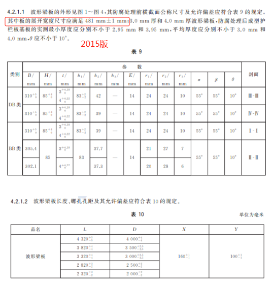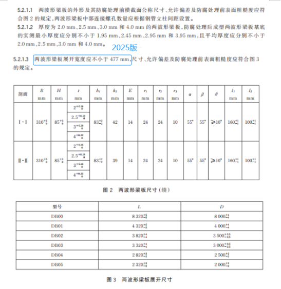 k) 更改了兩波形梁板外形圖、橫截面公稱尺寸、展開(kāi)尺寸及允許偏差(見(jiàn) 5.2.1.1~5.2.1.3,2015 版的 4.2.1.1、4.2.1.2);