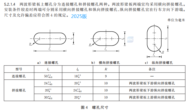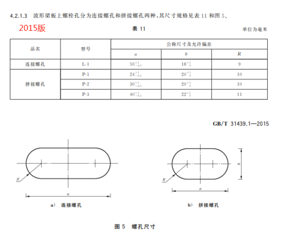 m) 更改了兩波形梁板螺孔規(guī)格(見(jiàn) 5.2.1.4,2015 年版的 4.2.1.3);