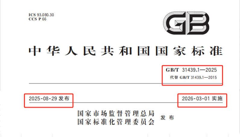 GB/T 31439.1-2025《波形梁鋼護欄 第1部分:兩波形梁鋼護欄》?于2025年8月29日發布,計劃于2026年3月1日實施,替代2015版標準,規范公路交通工程中兩波形梁鋼護欄的技術要求與安全性能。