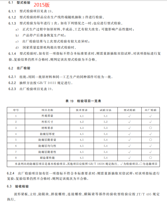 u) 更改了防腐處理后兩波形梁板基底金屬厚度試驗方法(見 6.2.2,2015 年版的 5.2.2);
