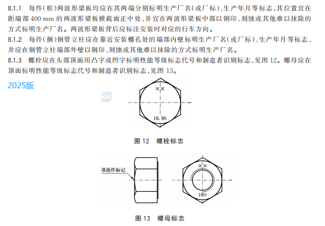 z) 更改了鋼管立柱、兩波形梁板、螺栓和螺母的標志方法(見 8.1.2、8.1.3,2015 年版的 7.2、7.3)。
