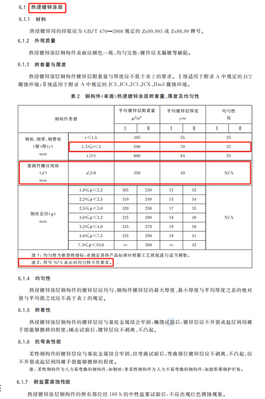 3. 更改了熱浸鍍鋅涂層、熱浸鍍鋅聚酯復合涂層、熱浸鍍鋅浸塑復合涂層、環氧鋅基聚酯復合涂層相關的部分技術要求。