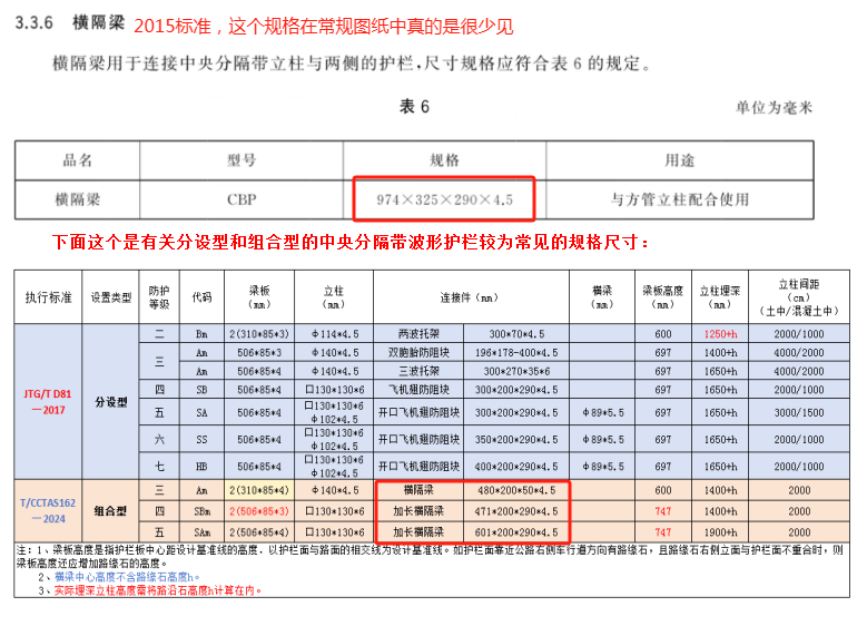 4、原2015三波護欄標準中的橫隔梁刪去,現(xiàn)行的有關(guān)中央分隔帶橫隔梁的標準可以參考:團體標準T/CCTAS162—2024《公路中央分隔帶組合型波形梁護欄技術(shù)規(guī)程》;