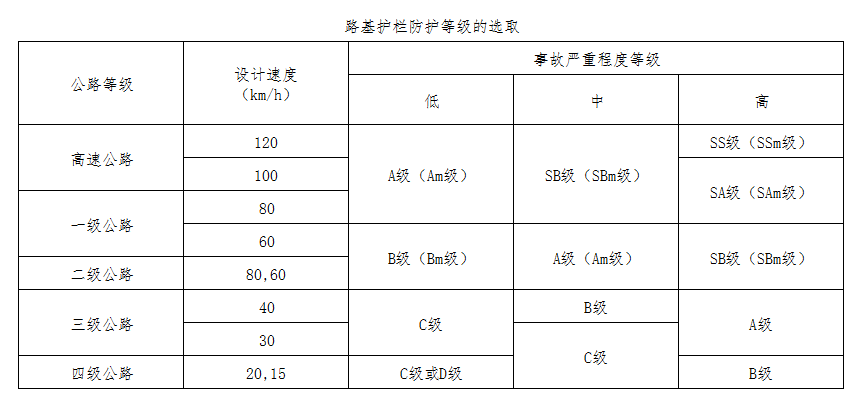 3、不同防護等級波形梁護欄的選用 條件: